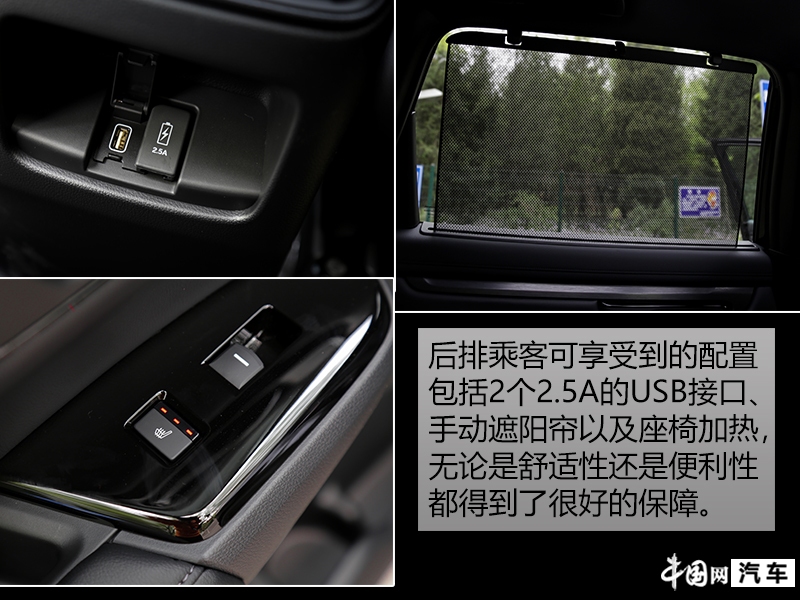全景天窗、空调出风口、2个2.5A接口、隐私玻璃+遮阳帘、座椅加热、专属多媒体控制屏,再加上舒适度有保障的座椅,方方面面都在为后排乘客考虑,在这个级别的车型中皓影的后排乘客乘坐幸福感或是最爆棚的那个。