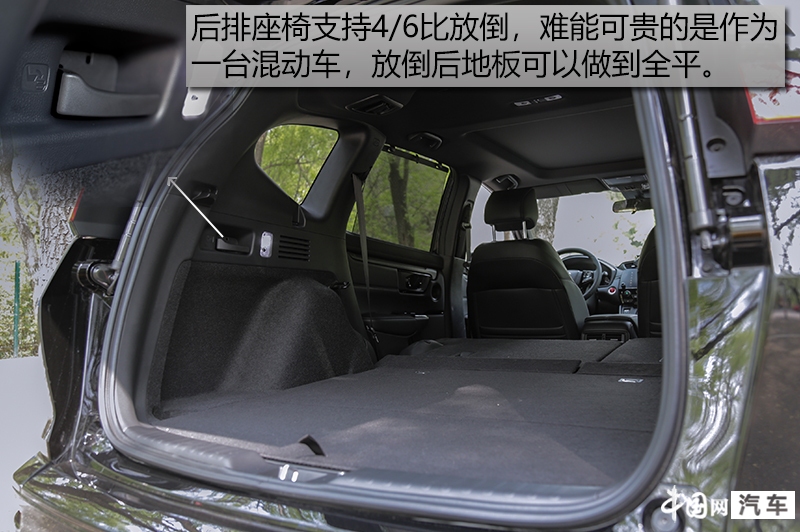 混动系统的加入并未对空间产生影响,后排同样可实现放倒。因电池组尺寸减少,再加上IPU被优化布置于后排座椅下方,通过工艺设计的巧妙,不占用乘客的使用空间,后备厢可得到充分利用,确保了其空间灵活性。