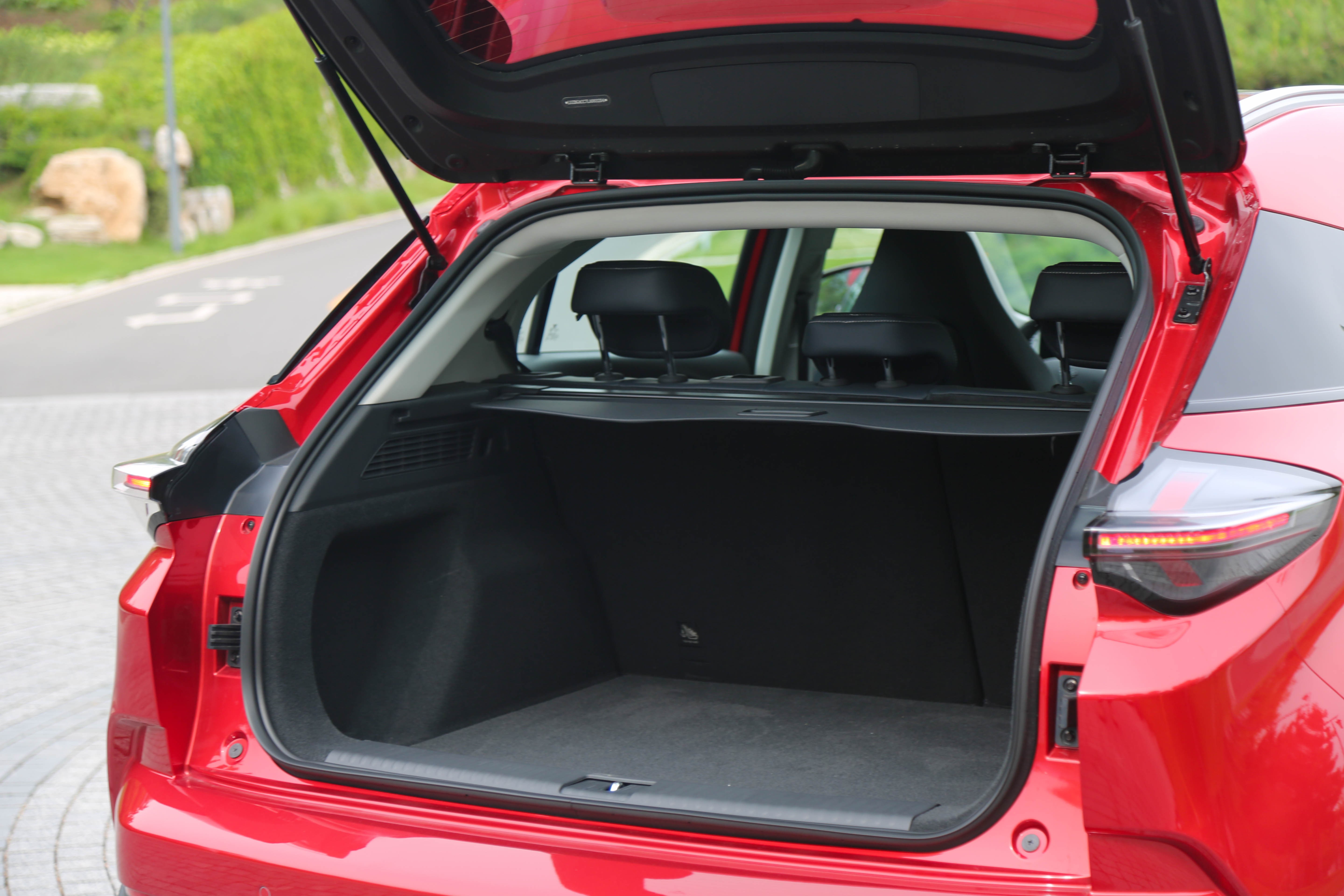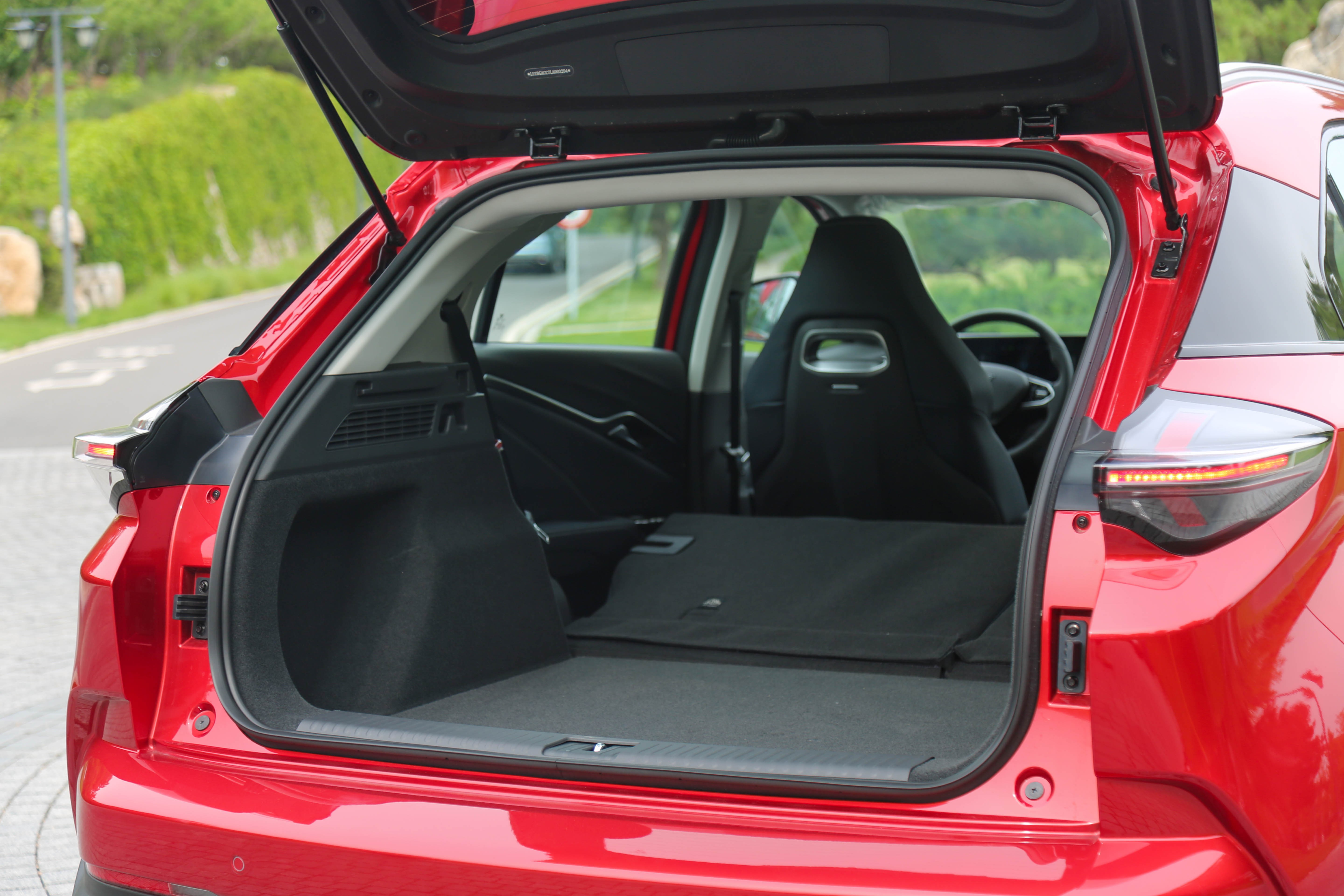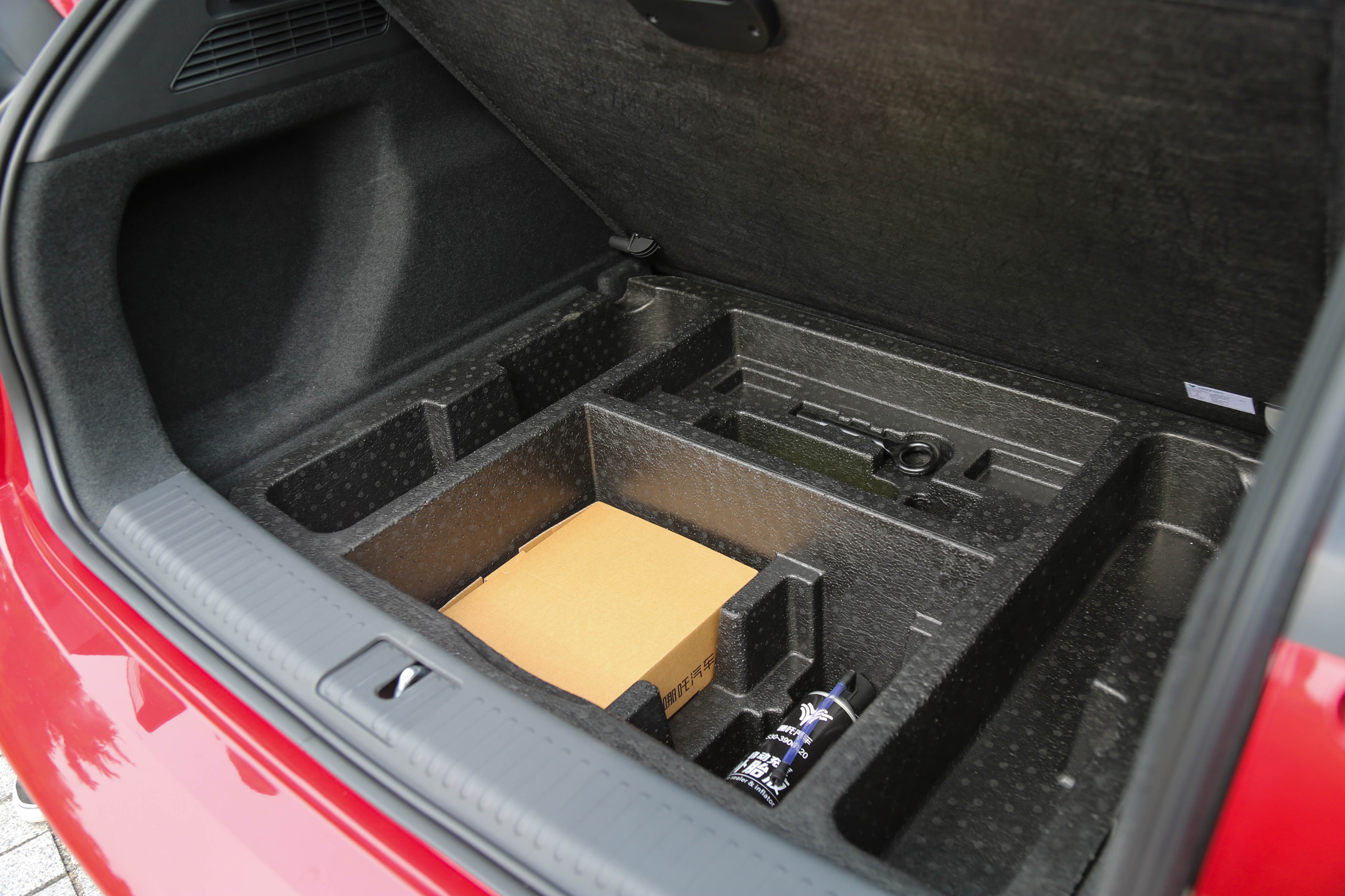 后排座椅可以按4/6比例放倒,从而进一步拓展行李厢空间,只不过放倒后还有一定的坡度。打开后备厢盖板,还有很丰富的储物格,而且没有备胎,取而代之的是应急补胎液。