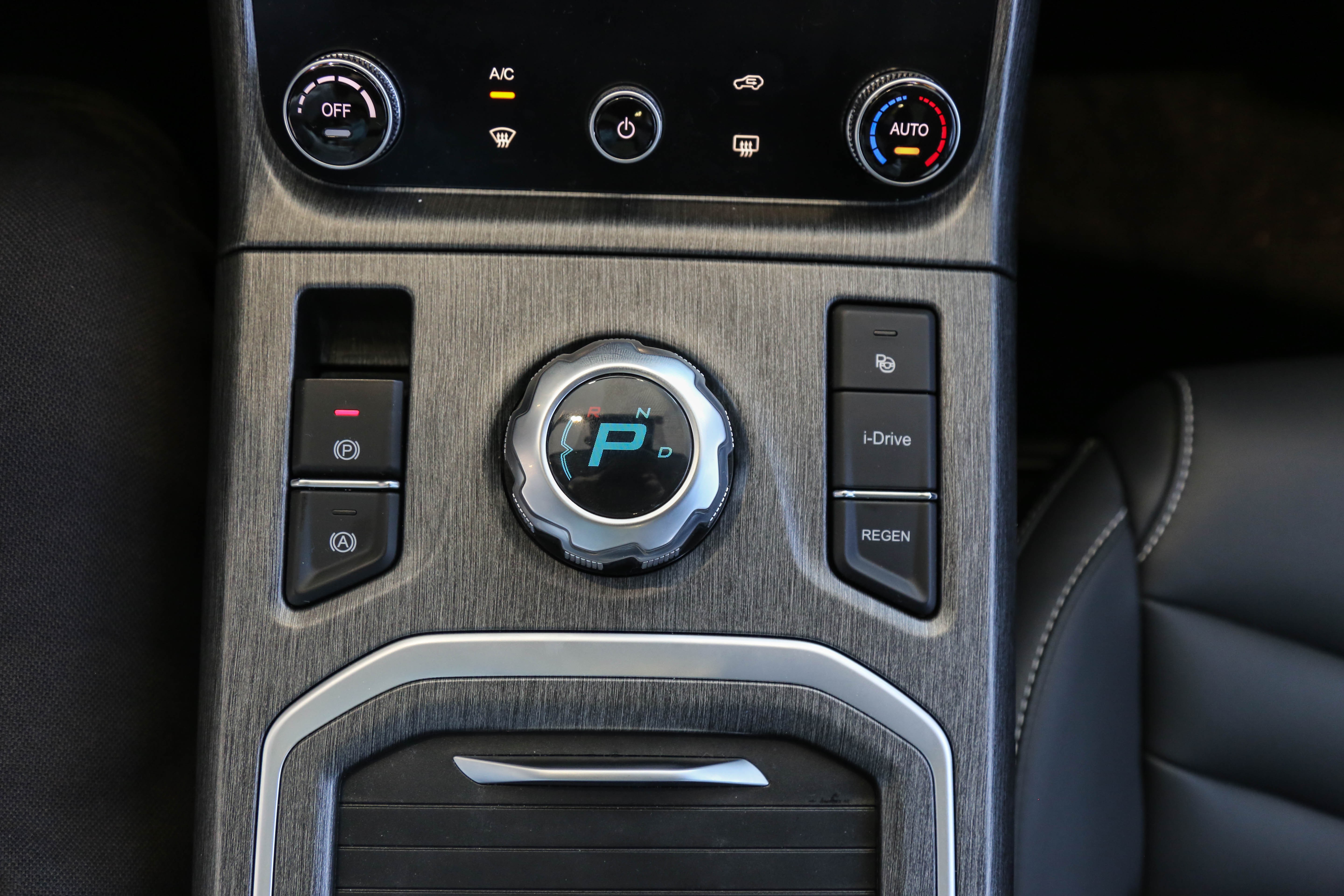 换挡机构周围的按键“i-Drive”用来切换不同的驾驶模式,下方的“REGEN”用来调整动能回收力度的等级。