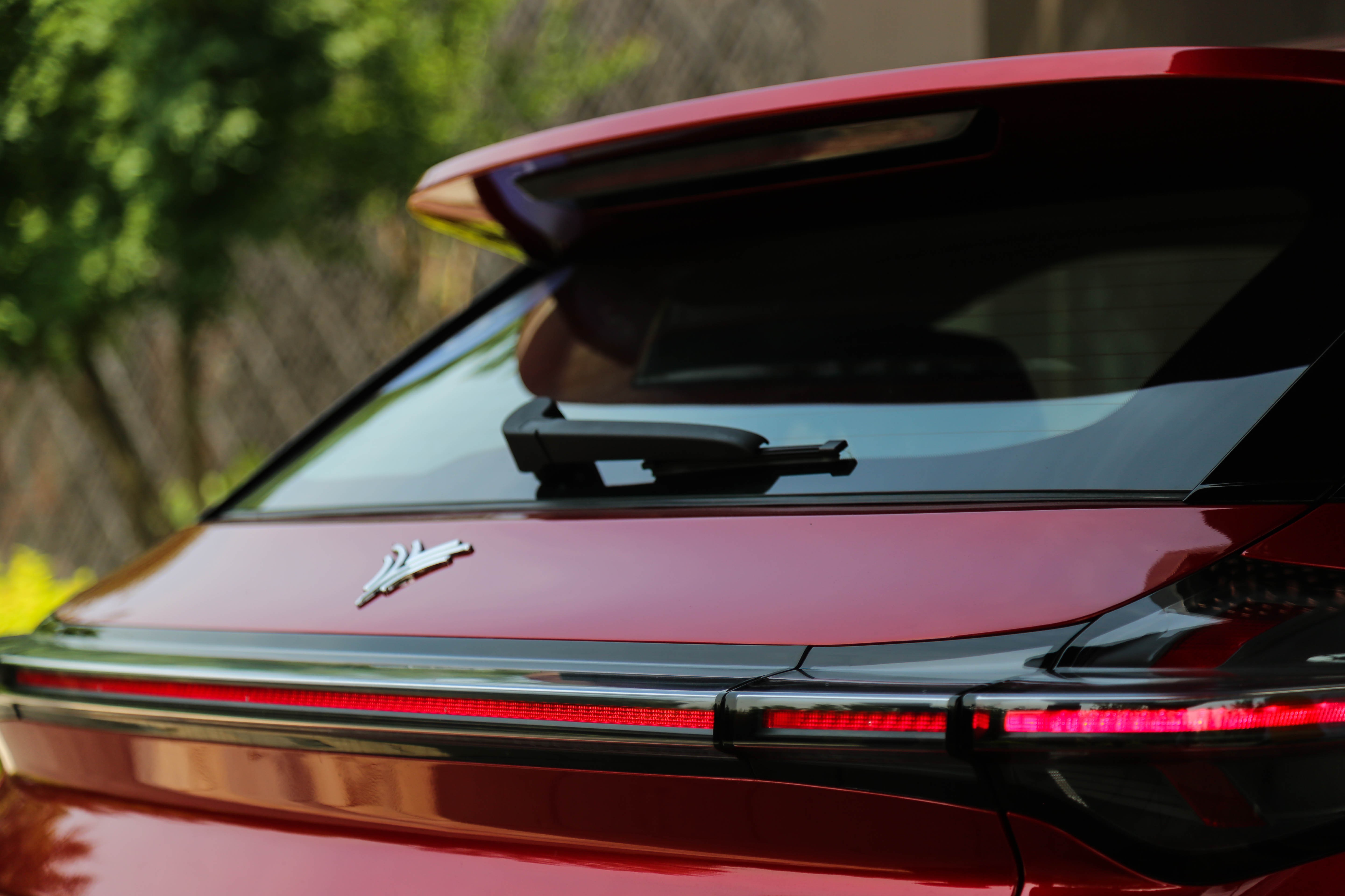 贯穿式的灯带设计在前方车辆的后视镜中绝对是耀眼的存在,灯带的两侧为“T”字型设计,另外在灯带中间部分还融入了品牌LOGO形状,设计巧思,整体辨识度极高,而且可以很大程度上提高整车的豪华程度。重点是,全系标配。