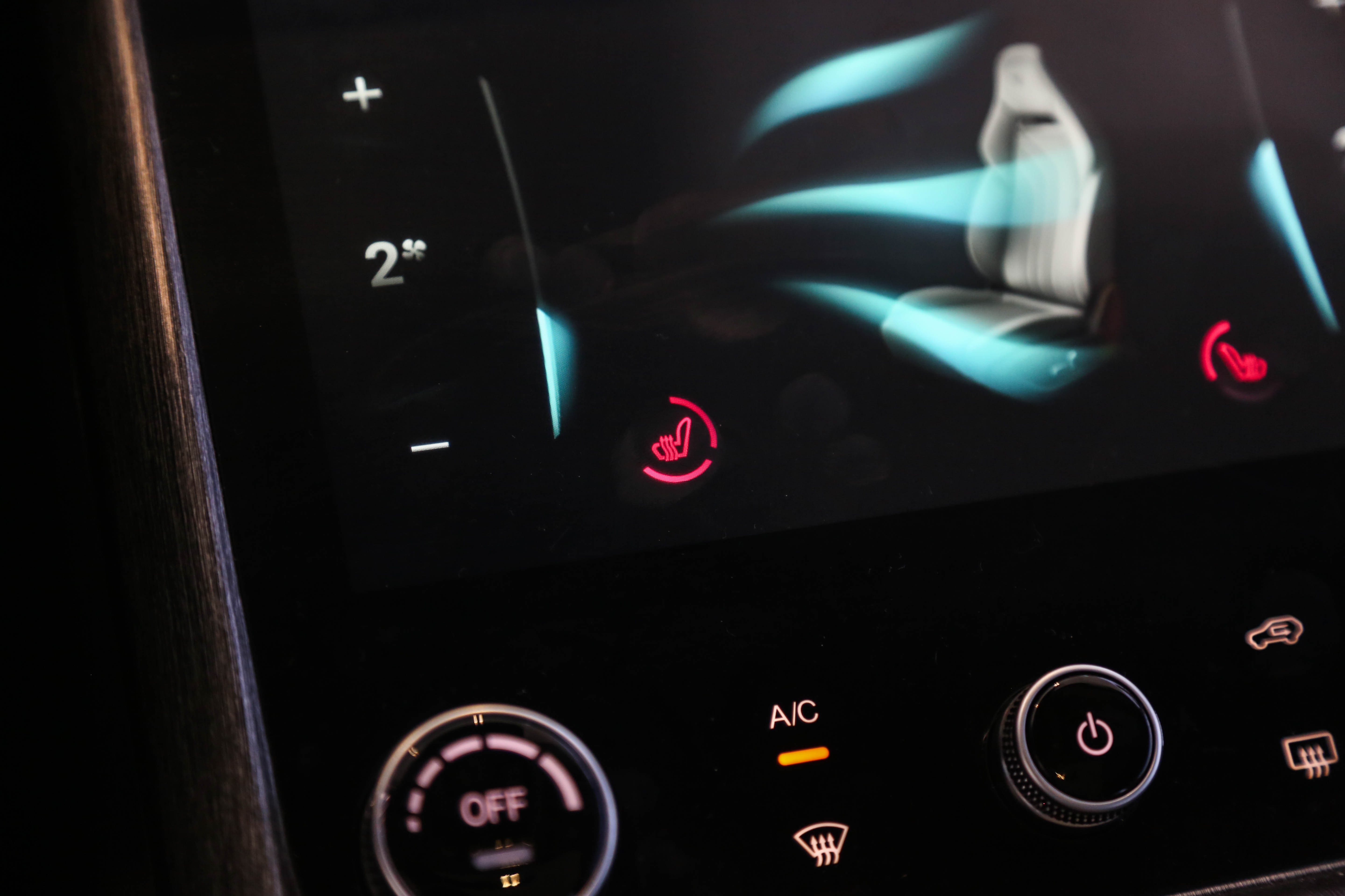 值得注意的是,无论是中控屏还是下方的显示屏,没有震动反馈,仅有声音提示,而且记者通过下方的显示屏在调节座椅加热时出现了反应不够灵敏的情况,这一点还需优化。