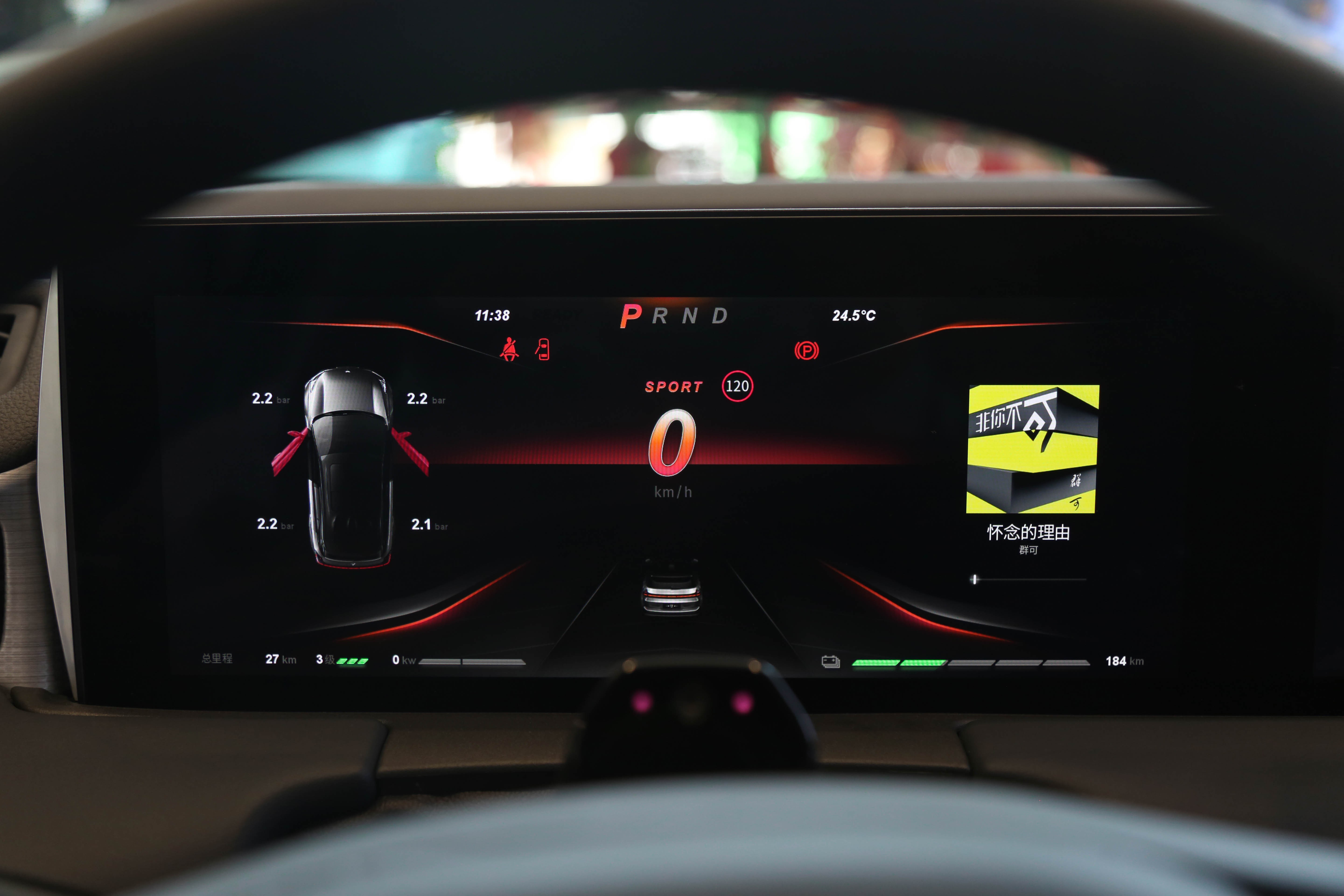 12.3英寸的液晶仪表盘可根据驾驶模式选择的不同切换对应的主题风格。有关驾驶辅助功能的部分占据了整个仪表盘最中心的位置,最下面不起眼的地方显示动能回收等级、续航里程等信息。