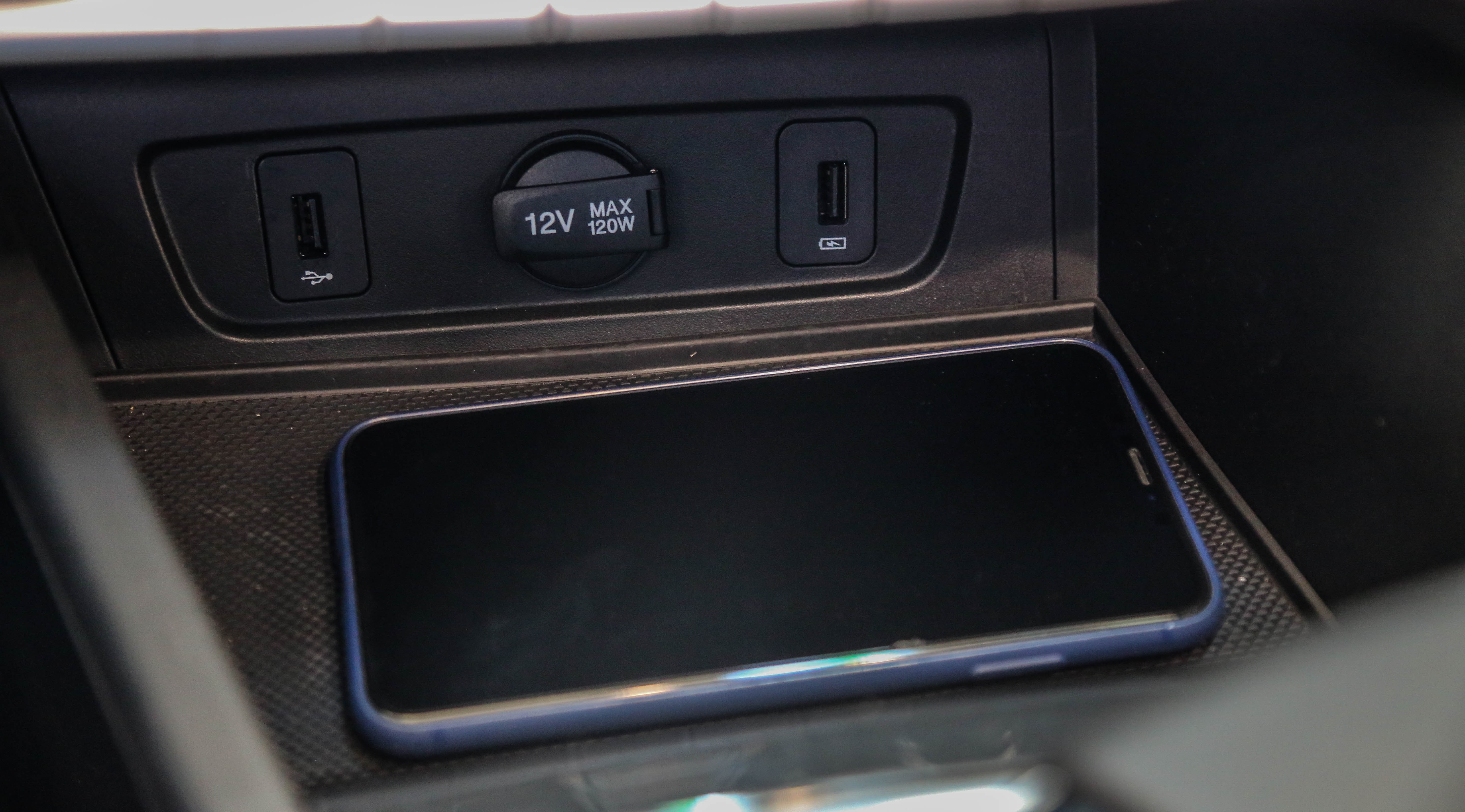 挡把前放留有一个尺寸很可观的储物空间,并配有2个USB和1个12V点烟器接口,前排的移动设备用电需求还是能得到很好的保障。