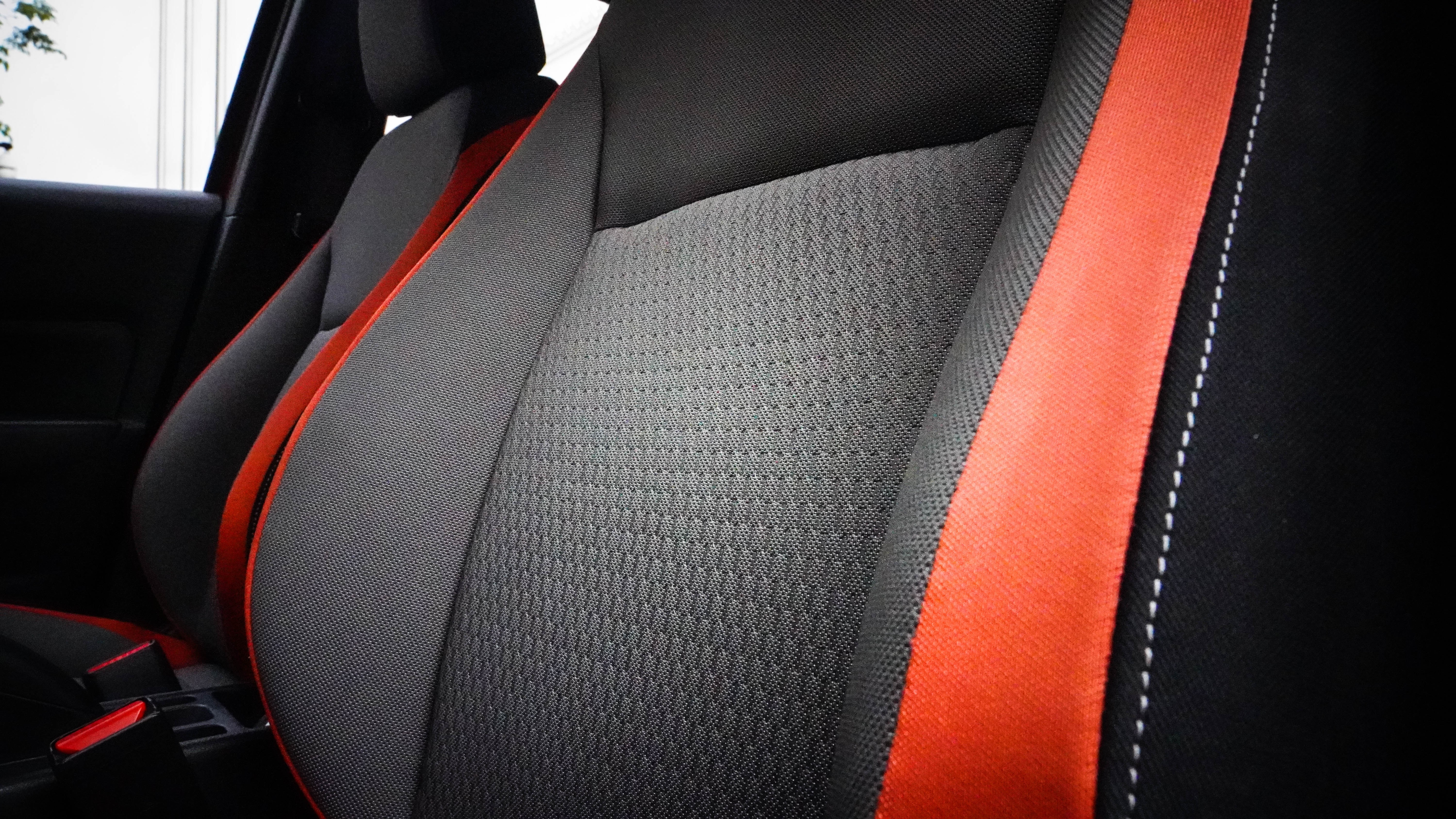 座椅采用的是拼色且是织物面料,此织物非廉价的织物,我个人是喜欢织物座椅,因为可以做到冬暖夏凉,我一直认为没有座椅通风的真皮座椅就是“耍流氓”。
