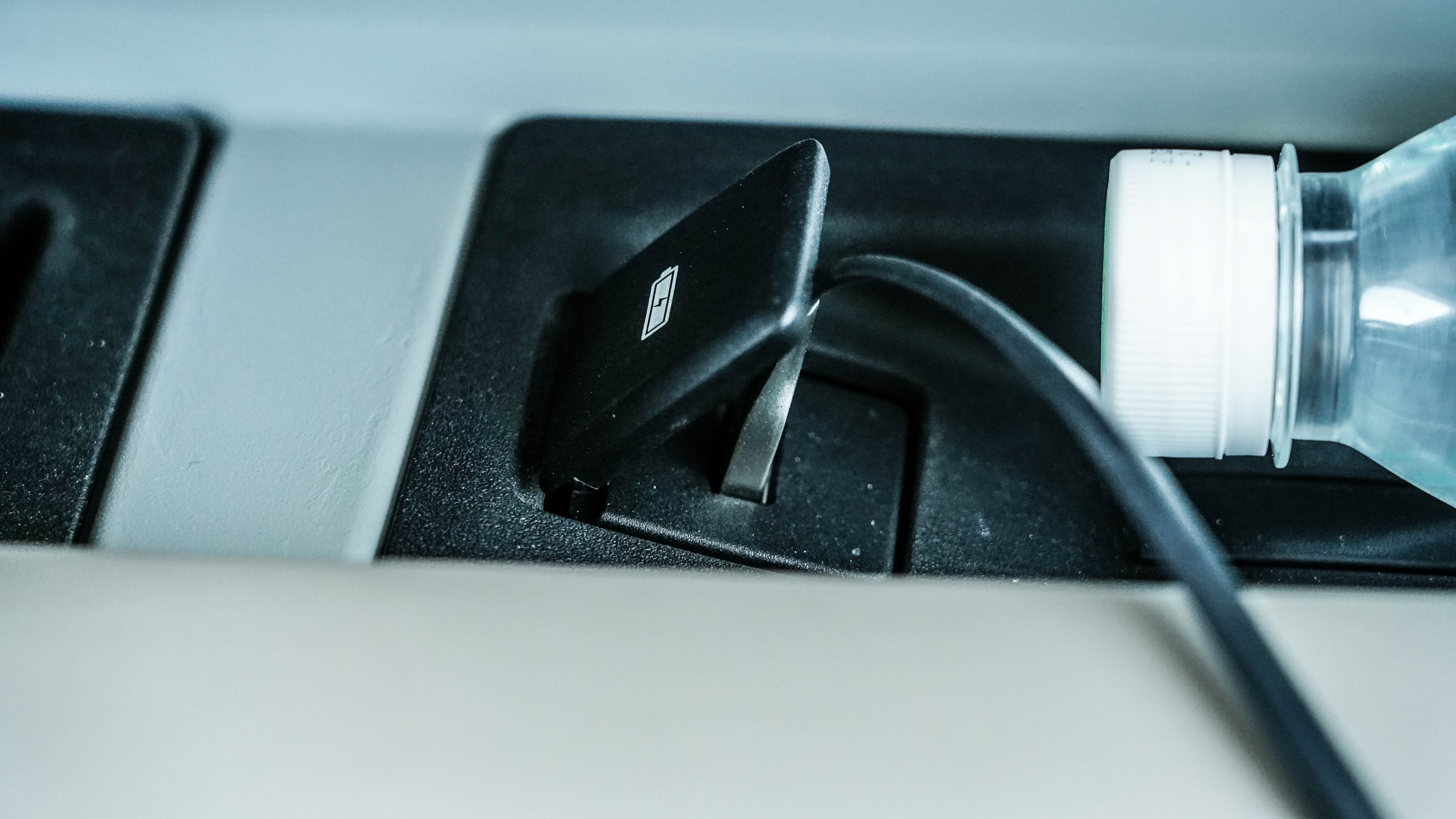 10英寸的中控屏与后方形成了镂空的设计,整个开放式储物空间的容积能达到6.9L,在里面还可以看到usb的接口。