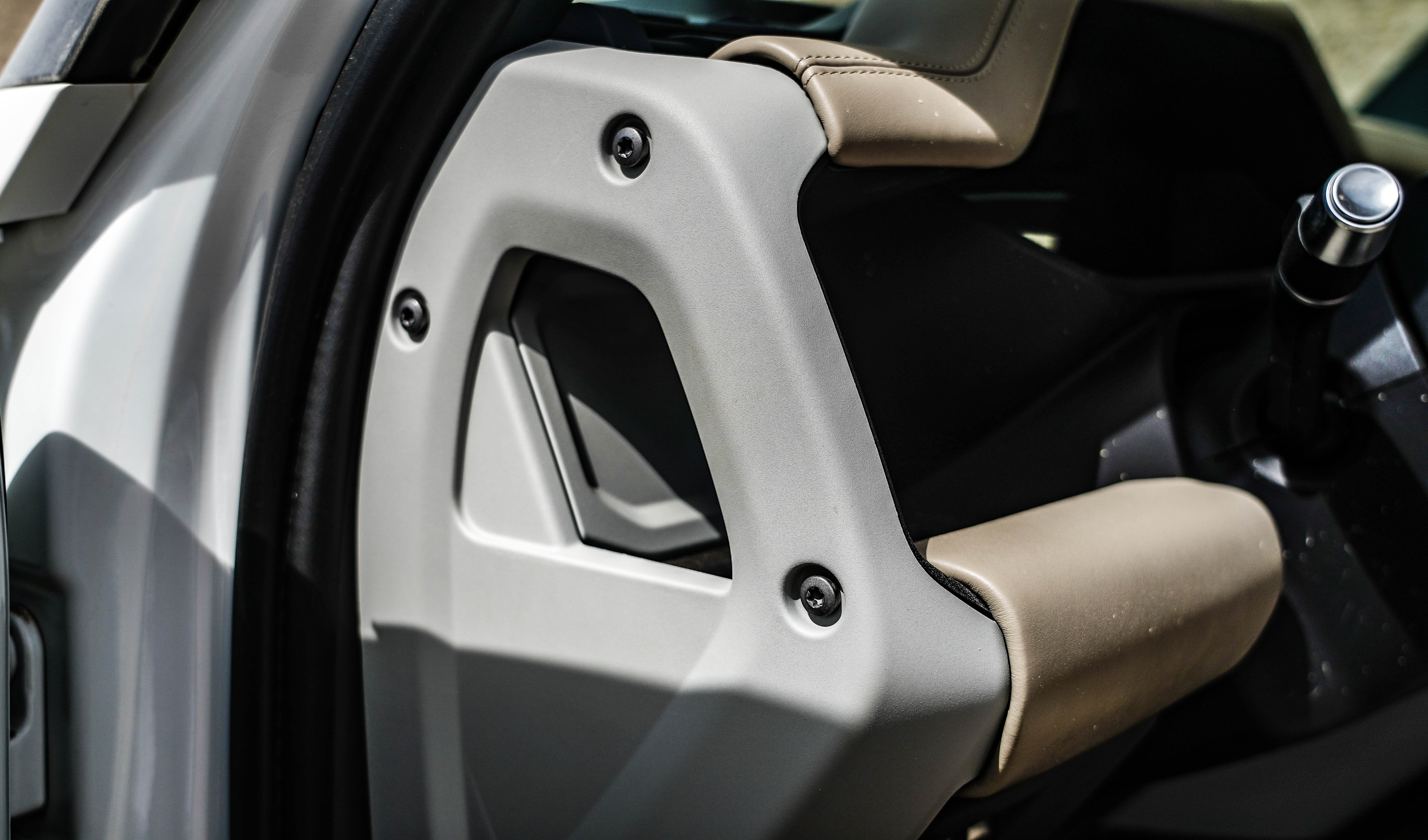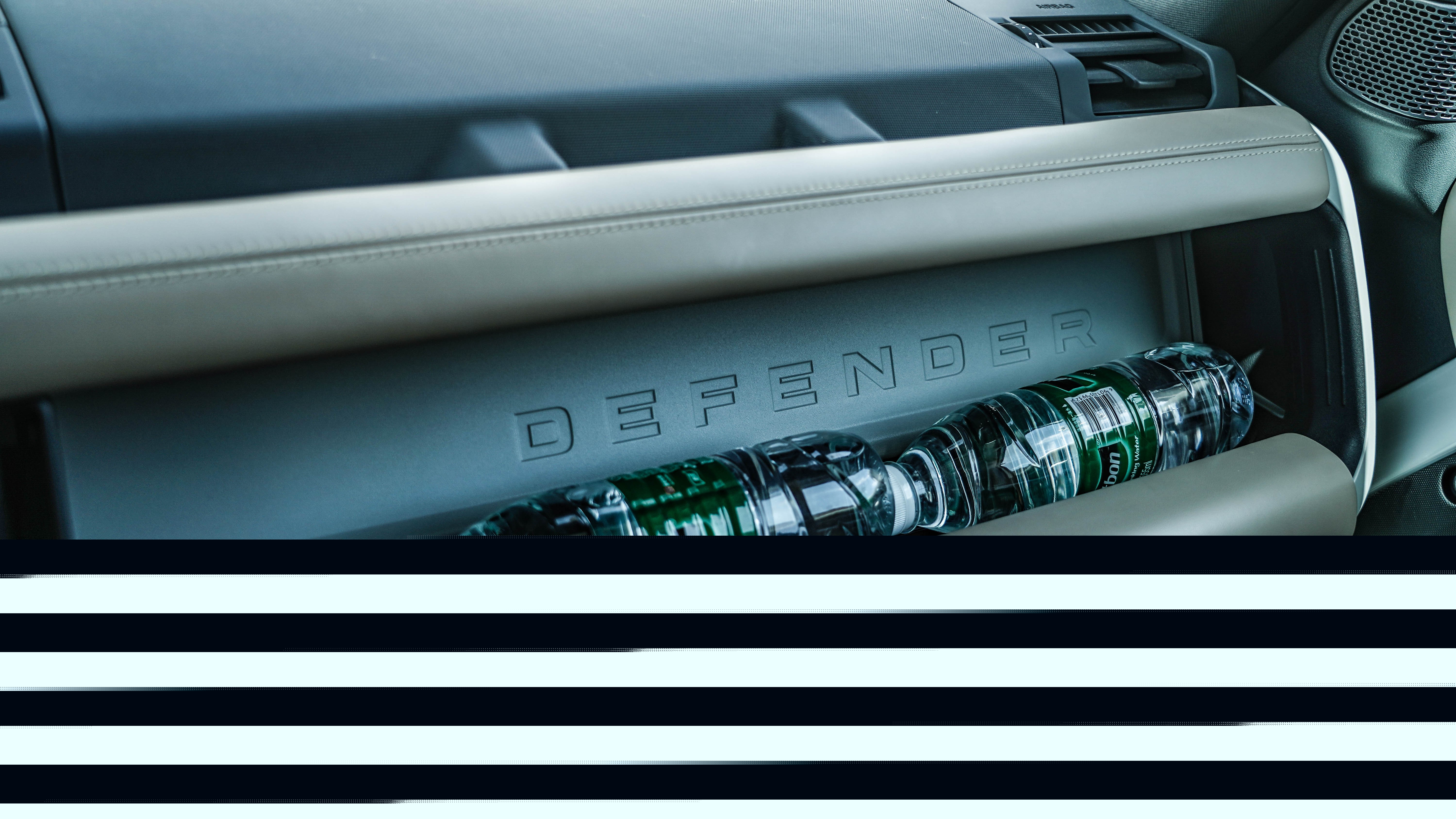 整个中控台由两根镁合金横梁为基础构件,以此拓展出了更多的功能设计。中控台左右两侧、副驾正前方都设有镁合金越野把手,体现极致越野的强悍本色。