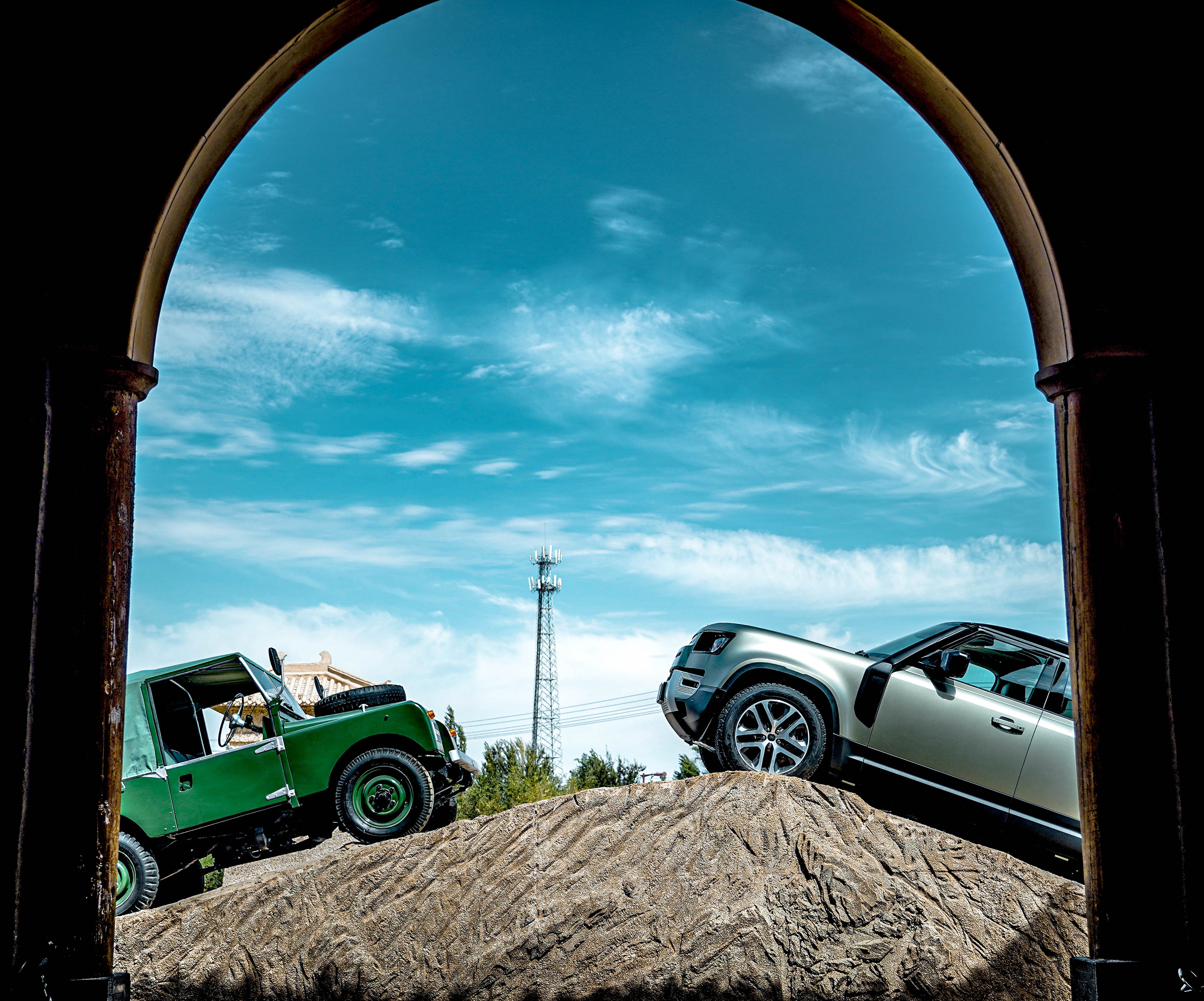 中国网汽车9月16日讯 下面这张图讲的是,时隔72年之后的一次对话,这是作为精神图腾之间的对话,只不过,时代变了。经历了沉寂数年之后,it's coming back。而我,有幸开台卫士在大漠戈壁里浪一回,算是人生一大幸事吧。之间经历了爬山涉水,飞沙走石,亲历了大漠的绝美风光,仿佛找到了向往的生活,重点是体会到了全新卫士的粗犷、强悍以及乐趣所在。
