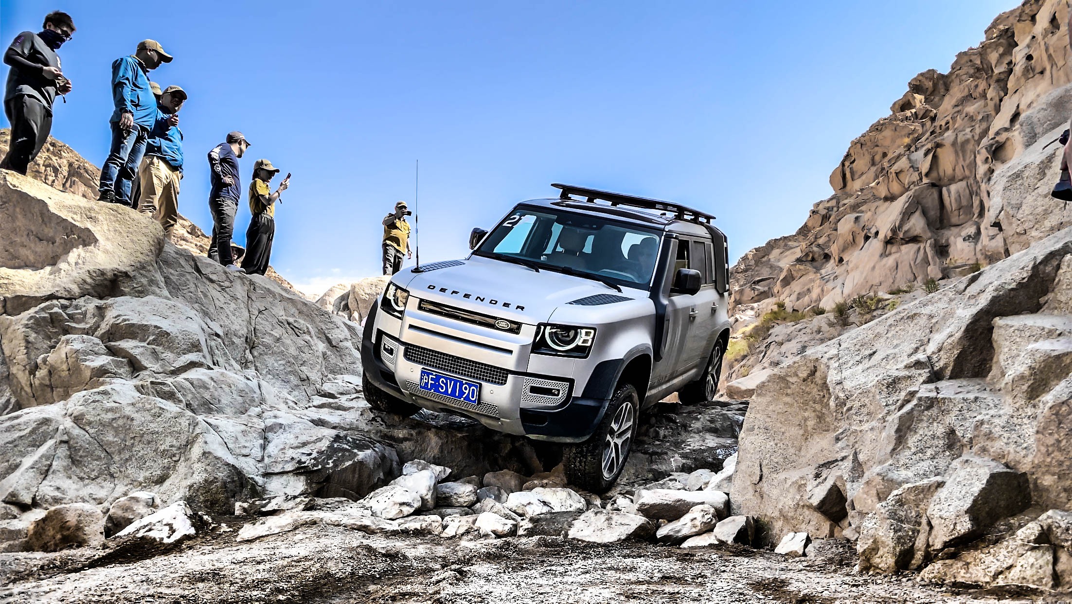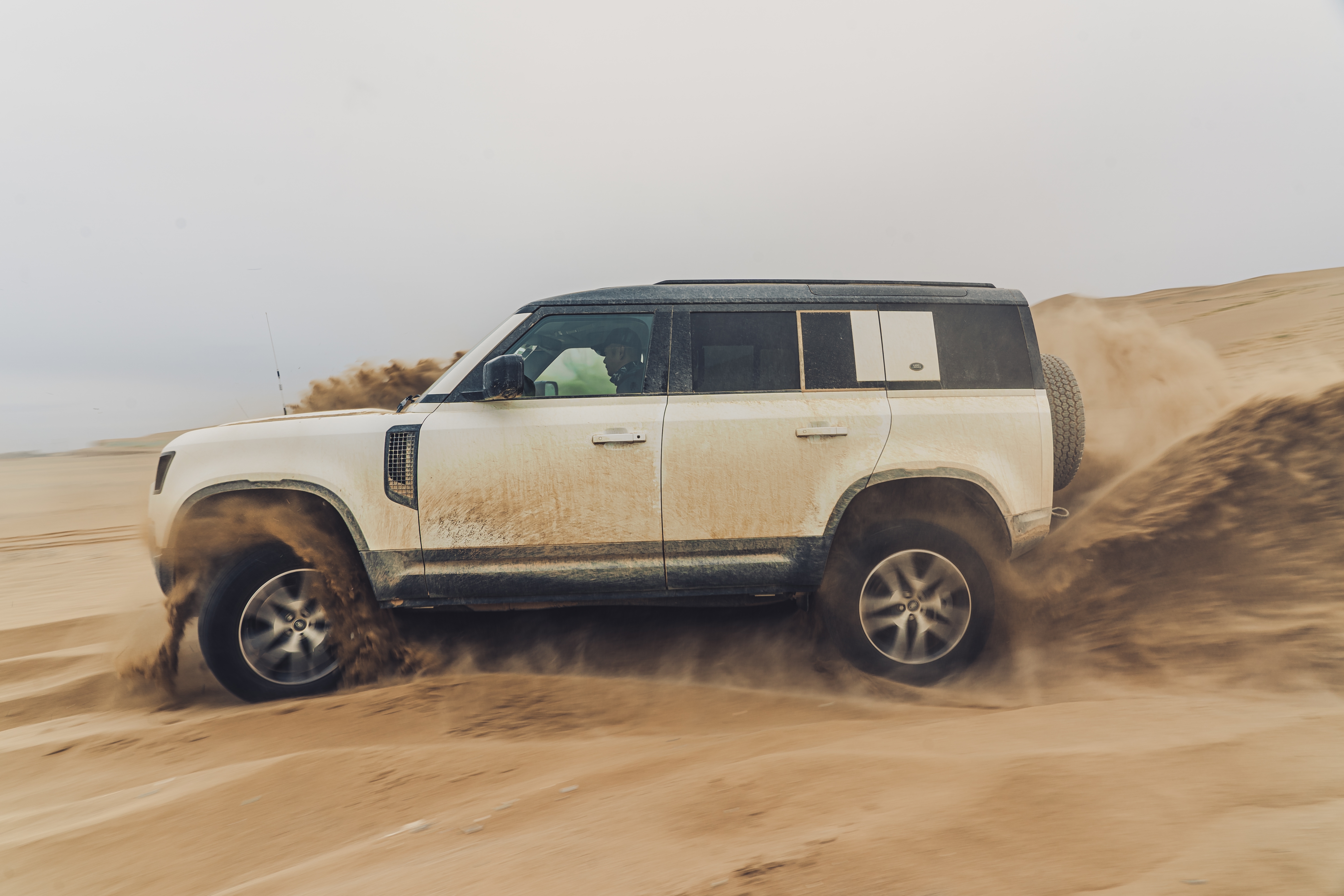 整个越野路段体验下来,第一直接的感受就是,这自动模式也太好用了,哪怕对于我这种越野小白来说,自动模式就可以很好的应付绝大多数的路况,比如一般情况下在沙地中行驶会遇到后轮摆动的情况,但是卫士这套四驱的自动模式可以很准确并迅速的侦测到当下路况,然后去自动的调整动力系统的输出来保证稳定的行驶。总而言之,就是非常的智能,可以称之为“傻瓜”越野模式,除了必要时需要开启岩石攀爬模式之外,对于其它路段可以说是如履平地,轻轻松松。