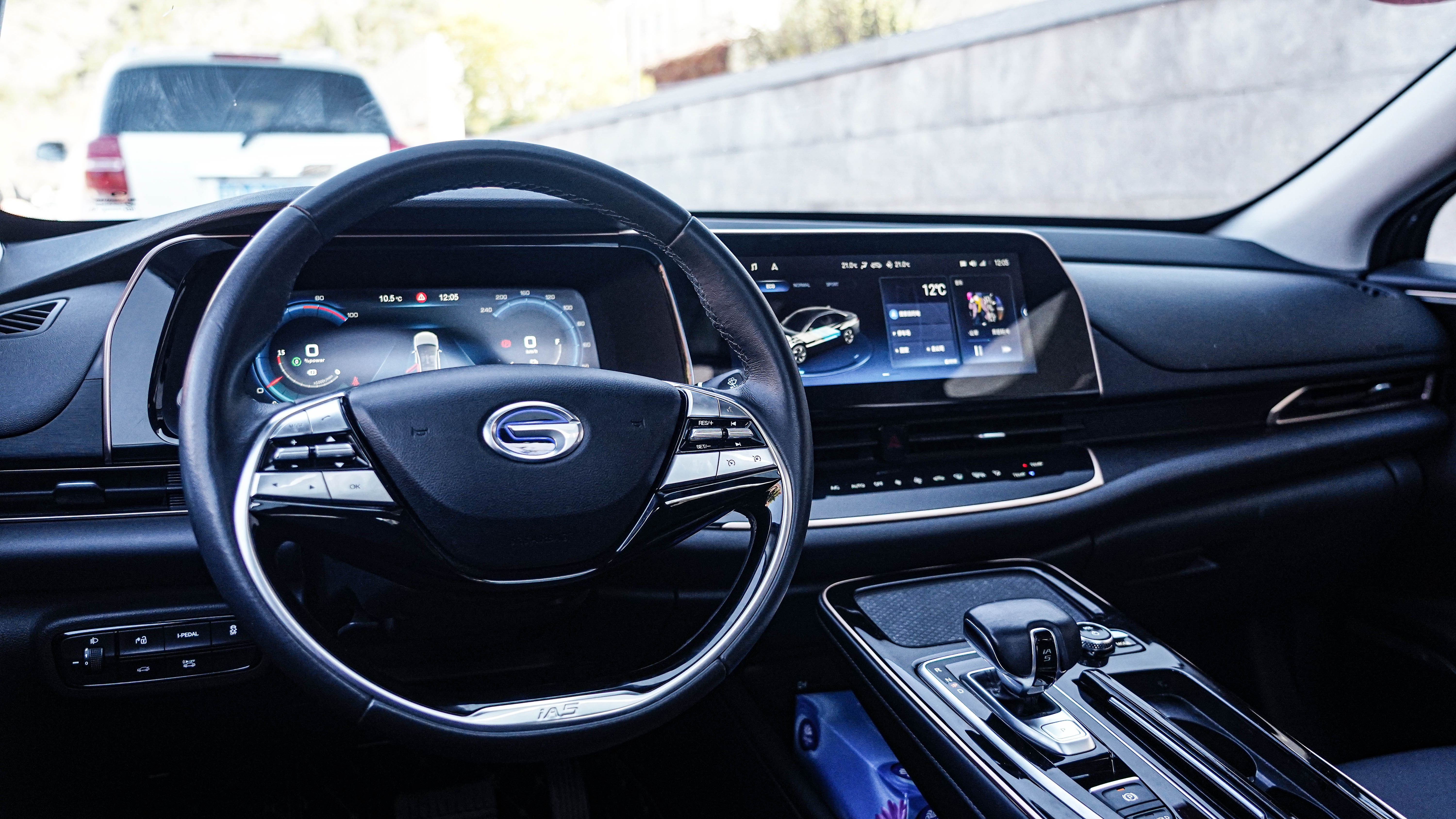 内饰部分,iA5与Aion S的整体布局如出一辙,双辐式方向盘,12.3英寸液晶仪表盘与12.3英寸中控屏的贯穿设计。中控屏的操作逻辑与流畅度都是可以令人满意的,但是中控台的空调控制面板容易因为反光而存在误触。
