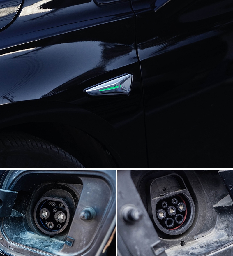 iA5的电池容量58.81kWh,动力电池能量密度170Wh/kg,NEDC综合工况续航里程510km。其直流快充接口和交流慢充接口分别位于车身左右后侧,在直流快充模式下,从30%电量至80%电量需47分钟,交流慢充充满电需10小时。准备充电时两侧翼子板处的指示灯会闪黄灯,正在充电时闪绿灯。