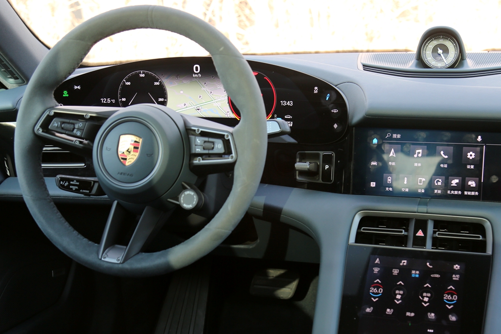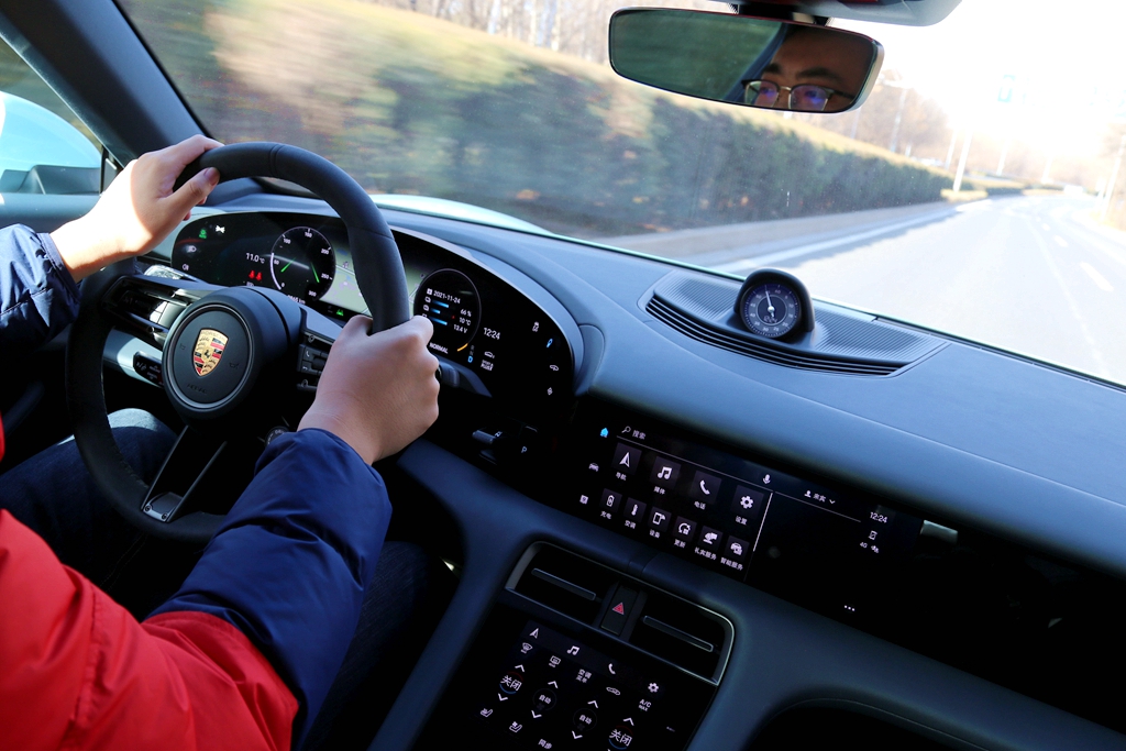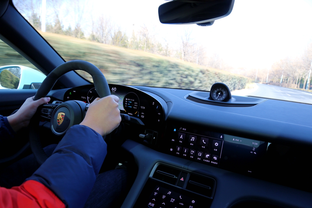 相比于Turbo车型3秒左右的破百加速时间,保时捷Taycan 4S车型搭载了普通79.2千瓦时的电池包,前后桥均配备了一台永磁同步电机,最高功率390kW,可实现四轮驱动,0-100公里/小时加速成绩为4秒。不过,4秒的破百时间依旧让Taycan 4S在市区行走时的加速踏板永远踩不过“一半”行程。再加上电机的本身的特性,Taycan 4S的动力输出几乎没有一丝延迟。