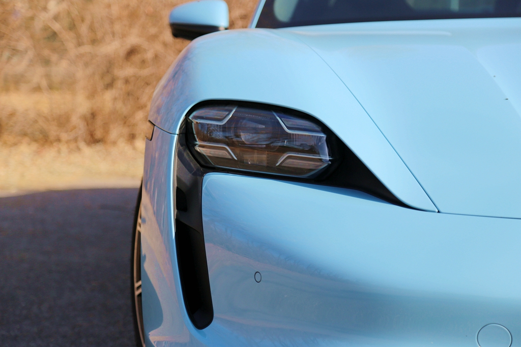 大灯下方的“泪眼”空气帘还是让Taycan极具辨识度,它更重要的作用是为制动系统提供冷却。