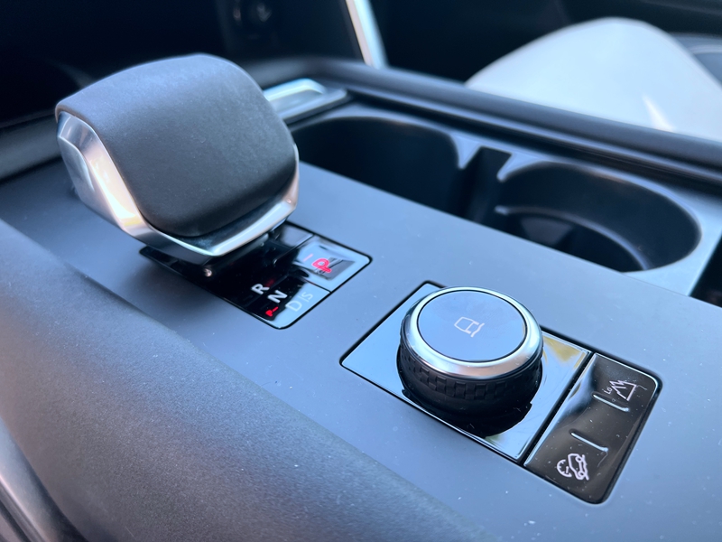 2021款发现内饰还发生了两处大的改变,包括旋钮式换挡机构换成了电子挡杆设计。同时,挡杆后方的全地形反馈适应系统旋钮也更加小巧精致了。值得一提是,副驾前方的仪表台上设置了一上一下的双储物盒设计,极为贴心。