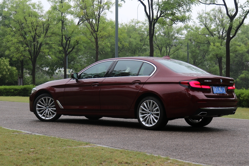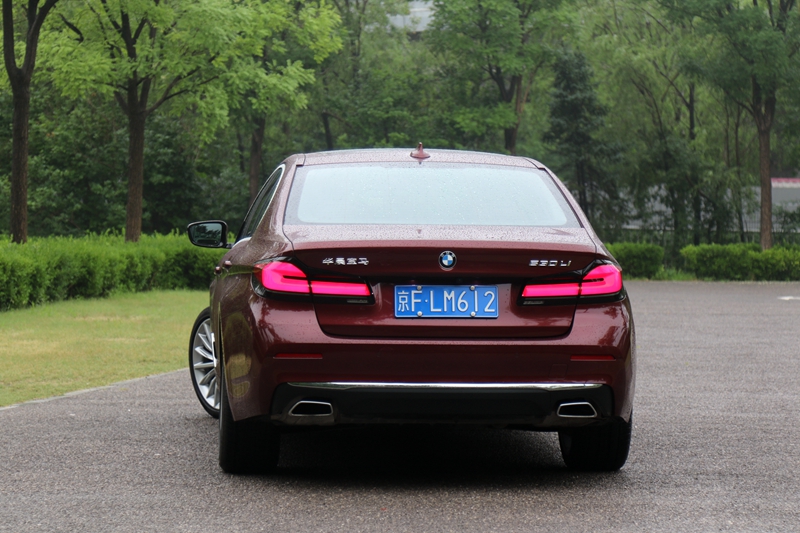 车身侧面,宝马530Li车身长度超5.1米,轴距超3.1米,但是加长后宝马530Li侧面设计协调且流畅,没有违和感。尾部方面,L型的熏黑尾灯以及双边单出式排气管也都激起了人们驾驶的欲望,同时尾灯点亮后的效果颇为醒目。