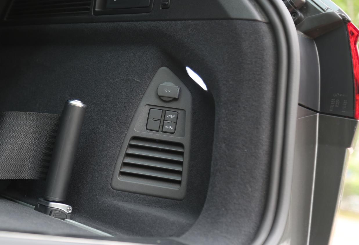 按下大众途锐后备箱内的悬挂降低按键,可以在普通悬挂高度基础上,再让后轮空气悬挂下降40毫米,这对于个子不高的用户来说确实方便装卸物品,豪华车才有的细节设计,途锐保留下来了。