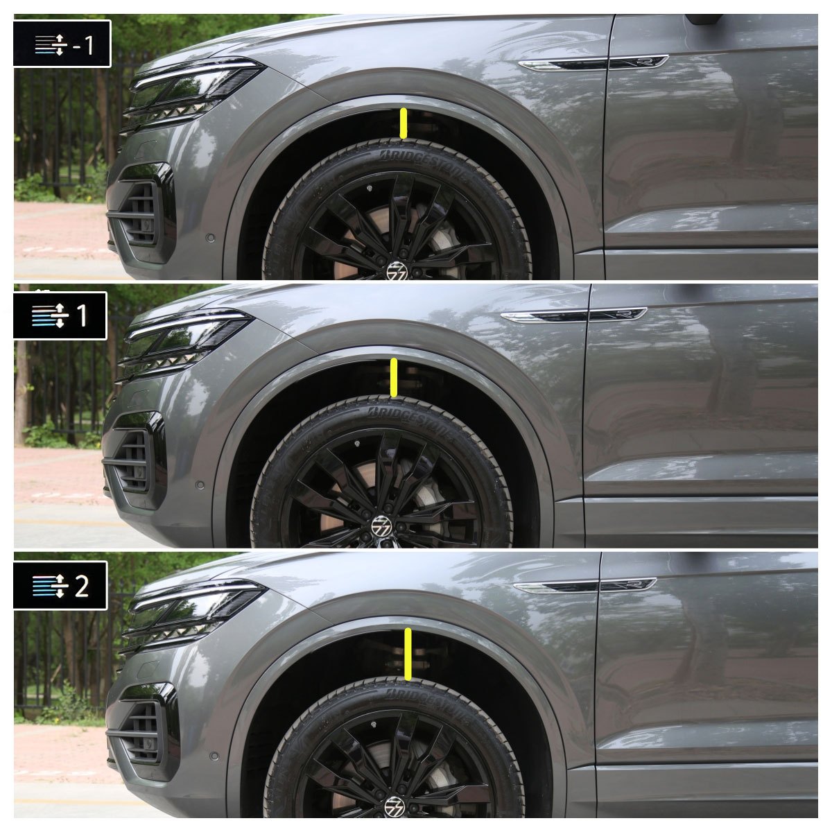 空气悬挂谁都可以有,但功能的多少和调校的效果也有好坏之分。大众途锐的这套主动式空气悬挂可以升高70毫米、下降40毫米,是可调范围很大的一组空气悬挂。升高到最高时,途锐拥有258毫米的最小离地间隙,这相当于普通轿车两倍,足以应对很多复杂路况。