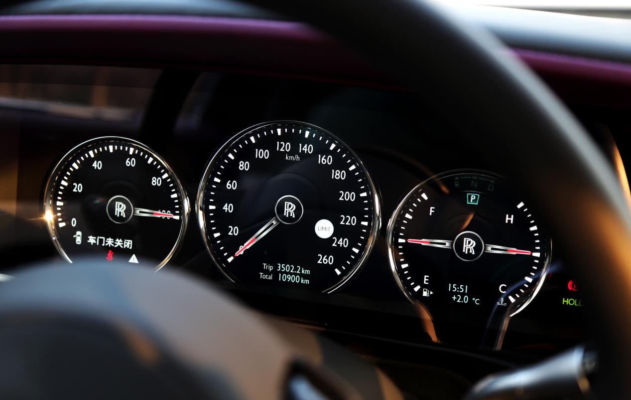 不过,为了更具备科技感,我们所试驾的古思特Black Badge也将仪表盘换成了电子形式,但我个人更希望仪表盘仍然保留机械式指针,因为劳斯莱斯古思特应该在全面电动化之前,再保留住那份机械感和纯粹。