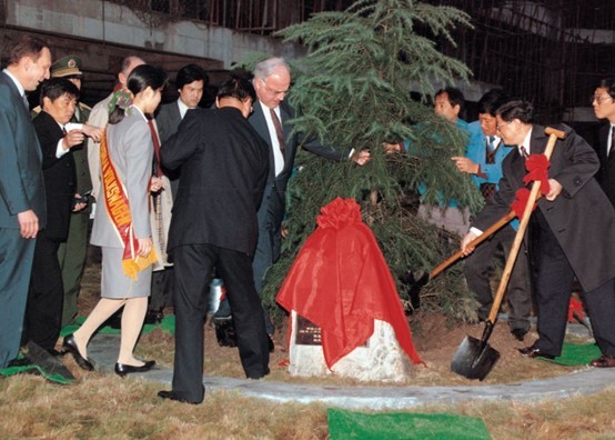 1993年11月17日当时的联邦德国总理科尔访问上海大众,并种下长青树